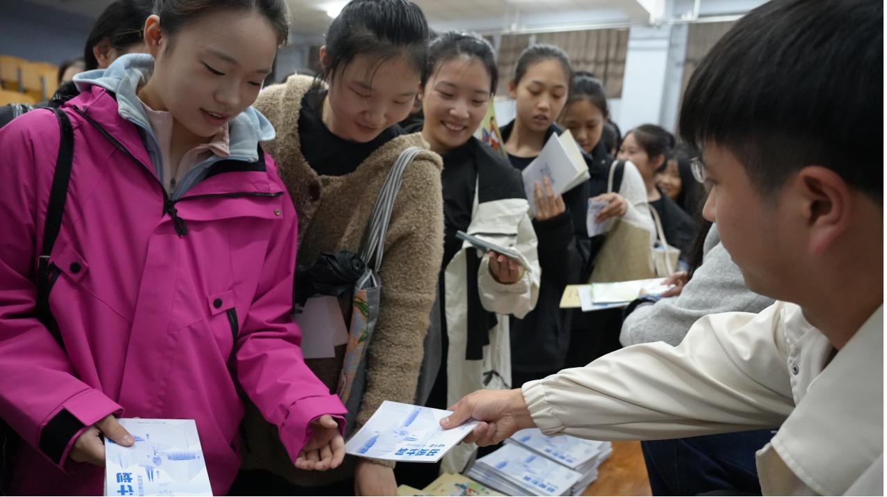 宣讲现场,工作人员通过清晰讲解报名流程、作品规范,搭配赛事海报、易拉宝等进行展示,帮助学子快速掌握赛事信息。其中,精心准备的唐山主题文旅宣传品成为现场 “抢手内容”,让学子在了解赛事之余沉浸式感受唐山文旅魅力与城市特色,更有效激发了大家的创作灵感,不少学生现场表达参赛意向。