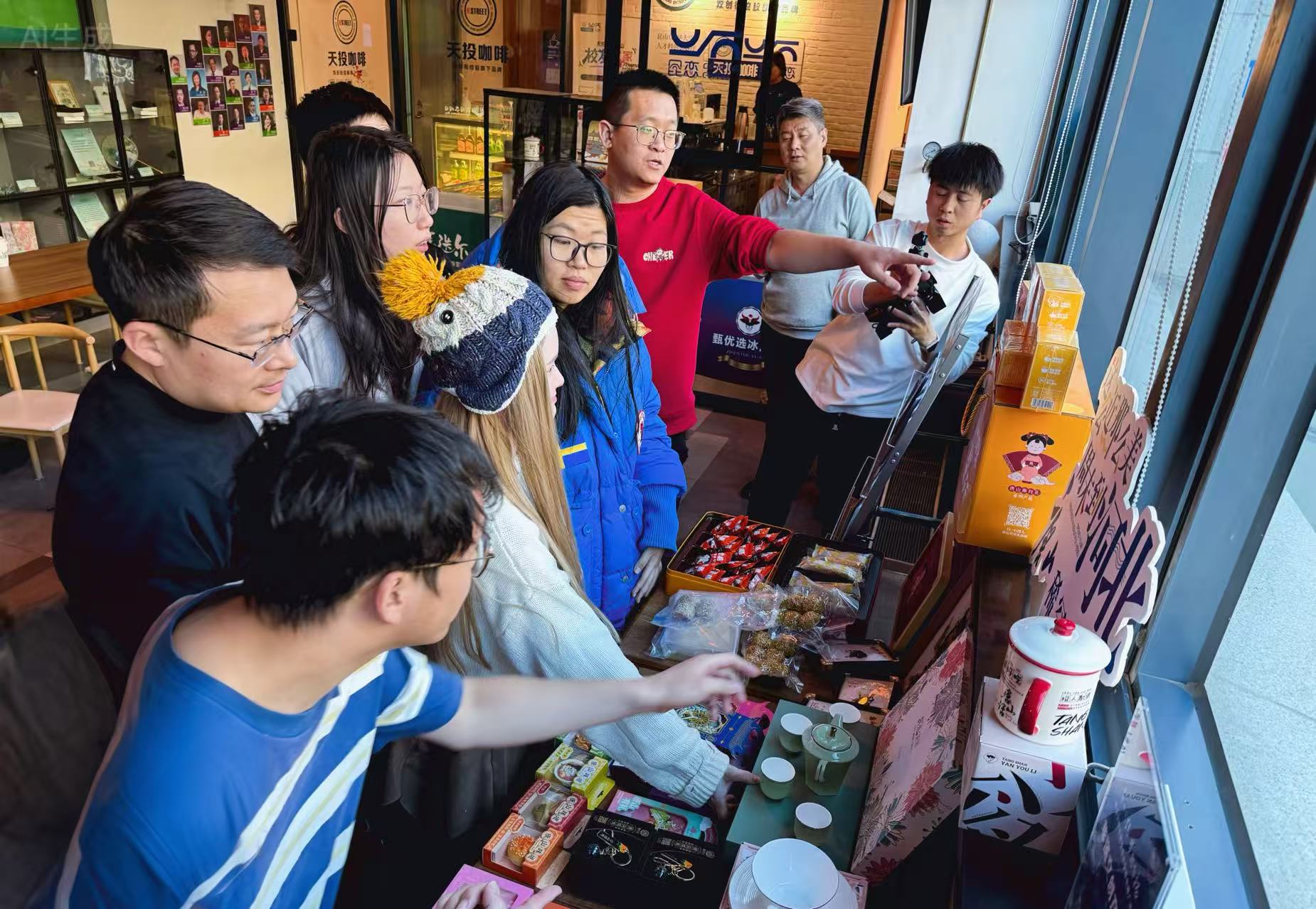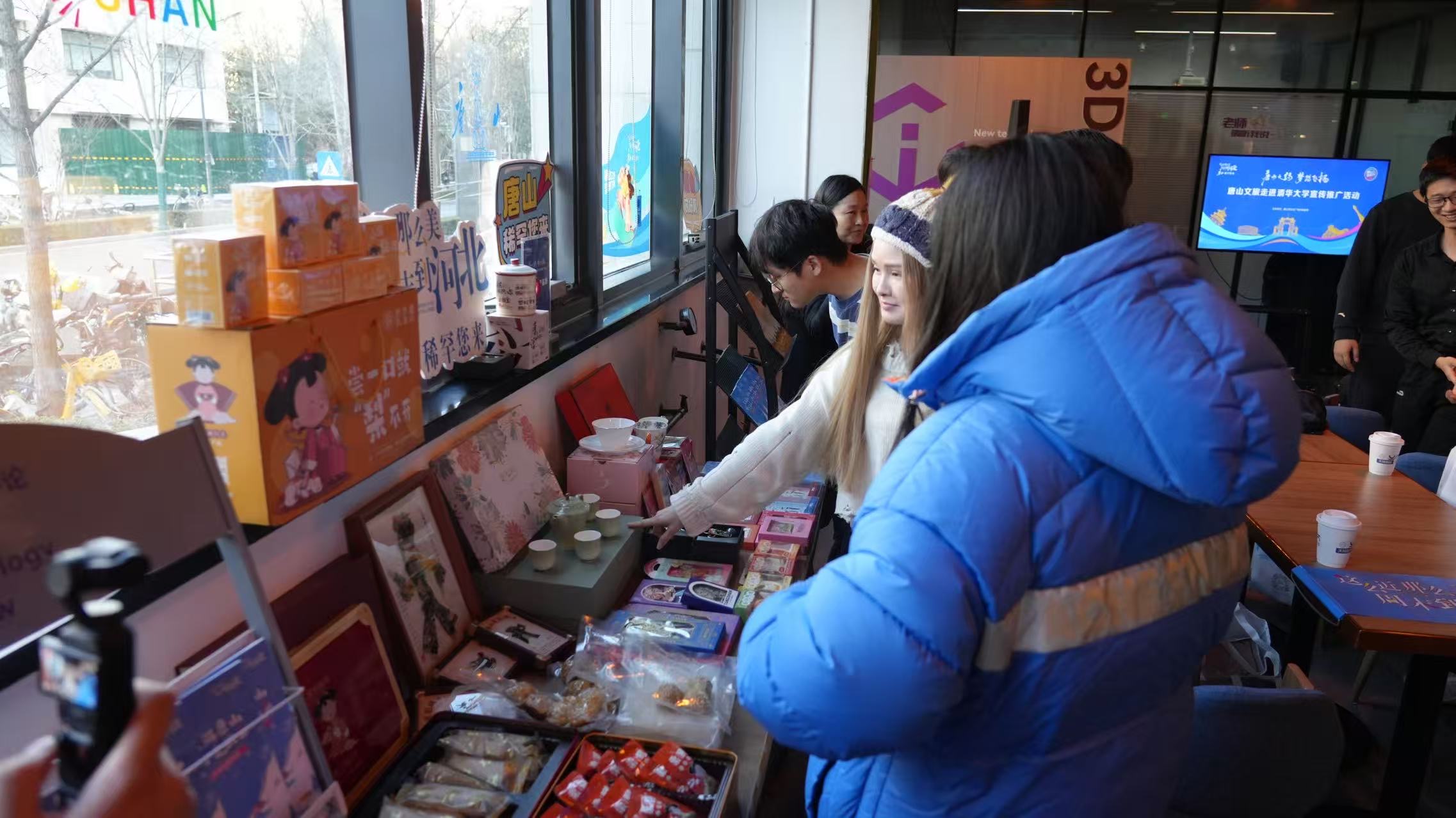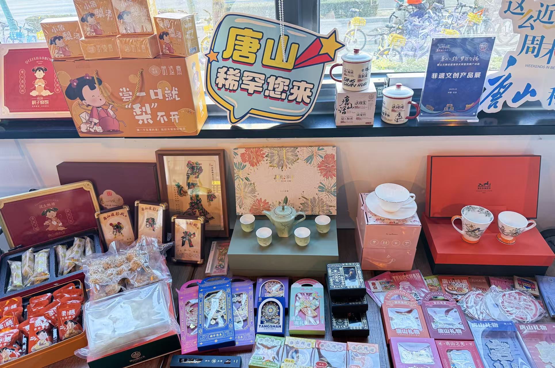 活动现场的展示区吸引众多学生驻足观赏、打卡留念,皮影雕刻的精巧纹样尽显非遗匠心,陶瓷文创的别致设计承载“北方瓷都” 的千年文脉;棋子烧饼的咸香、燕山板栗的甘甜交织弥漫,唤醒学子对唐山城市的向往。一旁的宣传展架以全景视角铺展唐山文旅风貌,全方位、多角度呈现城市魅力。