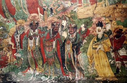 水陆画内容之所以如此庞杂,是因为水陆法会有其特殊的使命——“使未发菩提心者, 因此水陆法会而发菩提心;未脱离六道轮回者,因此水陆法会得解脱六道轮回之苦;未及成佛道者,因此水陆法会得以成就佛道”,也就是说,整堂壁画通过对天堂地狱的对照、人神处境的悬殊、善恶结果的迥异,寓意只有虔心向善,才能脱离苦海。换言之,水陆画就是一幅面向一切人生的抑恶扬善的感化图,人神互通,善恶可变,旨在陶冶世情,净化心灵。去掉其中的宗教迷信色彩,体现的却是教化人伦的社会意义。