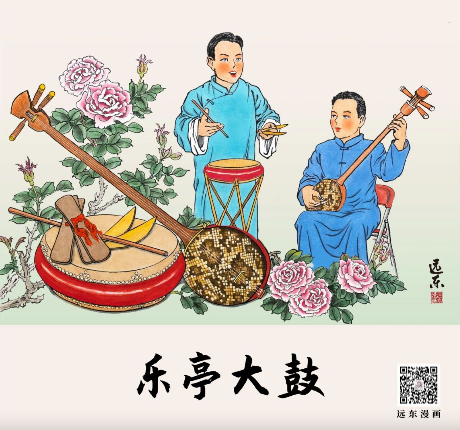 乐亭大鼓起源于明末清初乐亭县的民间小调“清平歌”,正式形成于清代中期,是中国北方主要曲种之一,蜚声于京、津、冀东和东三省地区。乐亭大鼓旋律优美、韵味独特、演出形式简单,以大三弦、鸳鸯板和书鼓等伴奏,融合说唱艺术与民歌腔调,素有“九腔十八调”之称,主要艺术流派有韩香圃创立的韩派和靳文然创立的靳派。2006年,乐亭大鼓被列入国家首批非物质文化遗产名录。