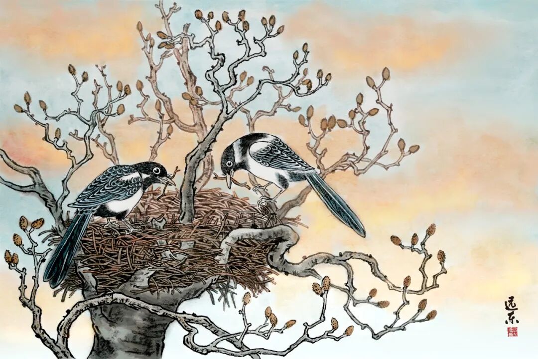 到了小寒时节,我国北方到处可以见到喜鹊,它们忙着筑巢,开始为繁殖后代做准备。这一现象标志着阳气开始回升,自然界进入了一个新的生命周期。
