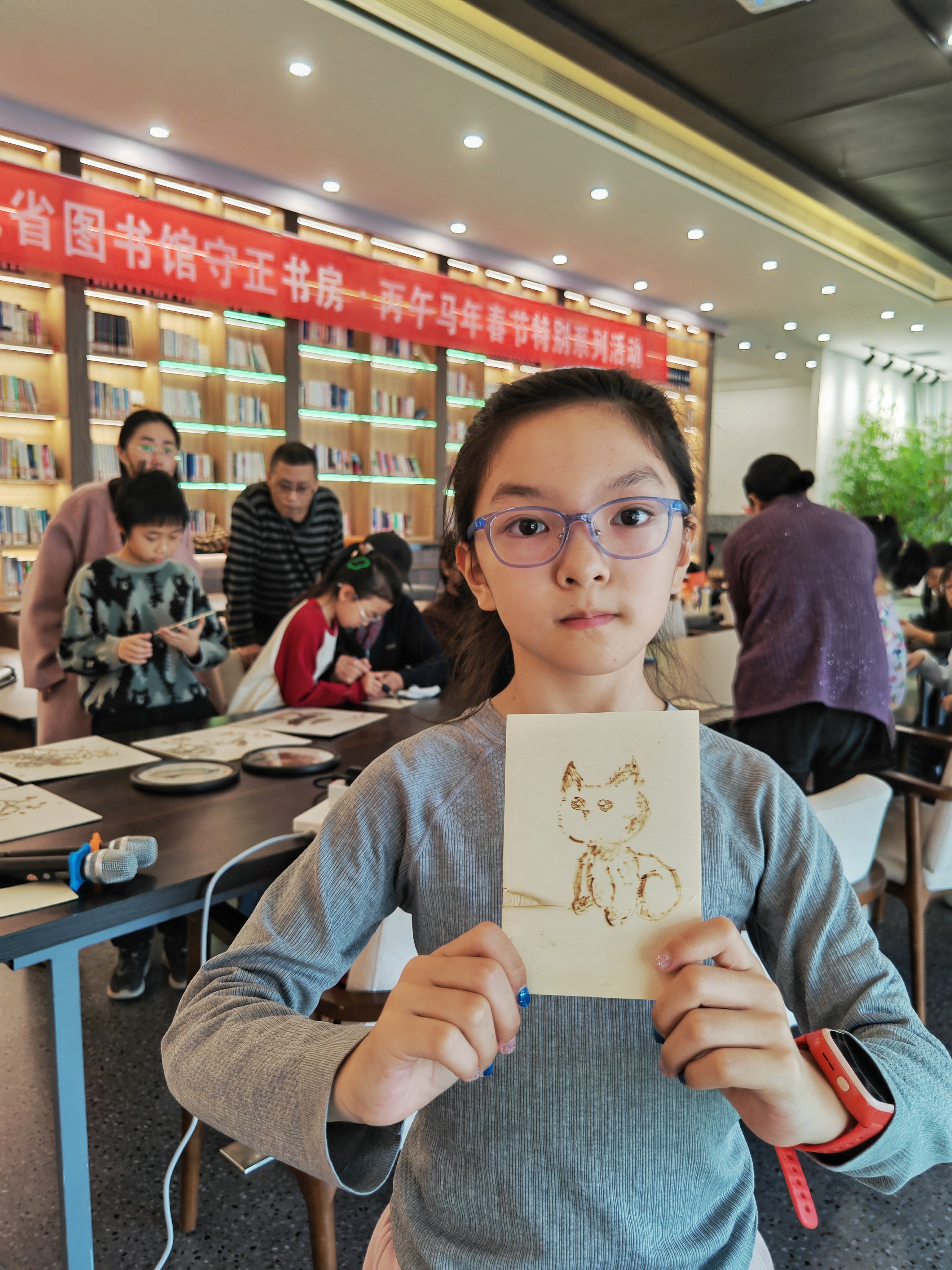 “真有趣!第一次尝试这种作画方式,感觉很新颖!”勾线、点染、上色,一群小读者们在老师的指导下,用电烙笔描绘出一幅幅图案……2月5日,一场别开生面的非遗烙画文化体验活动在河北省图书馆“守正书房”举行,吸引了众多读者参与。