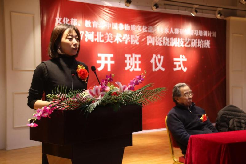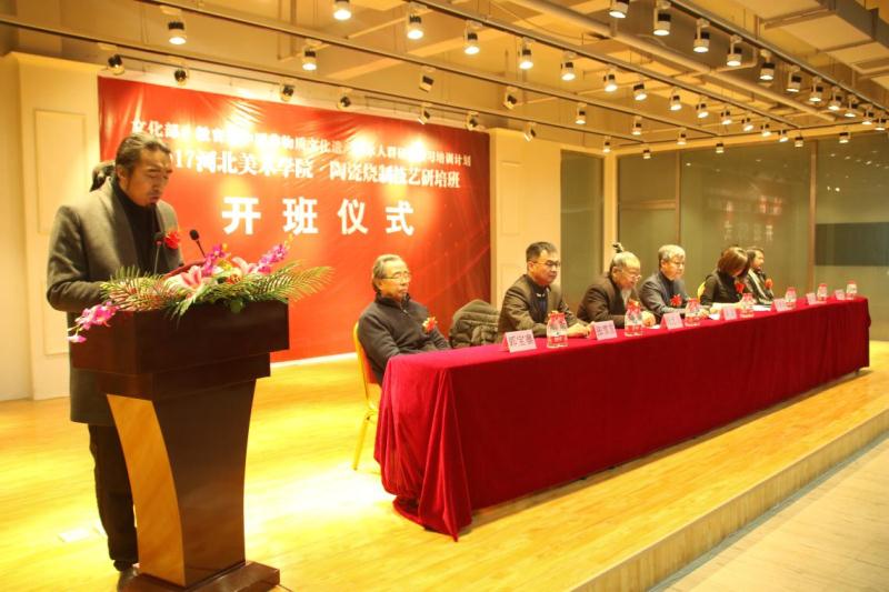 12月26日,在文化部的支持和河北省文化厅、教育厅的指导下,“中国非物质文化遗产传承人群研修研习培训计划——河北美术学院2017年陶瓷烧制培训班”在河北美术学院正式开班。文化部非遗司管理处调研员张晓莉、河北省文化厅副巡视员粱扉、河北美术学院校长甄忠义等领导出席本次活动。